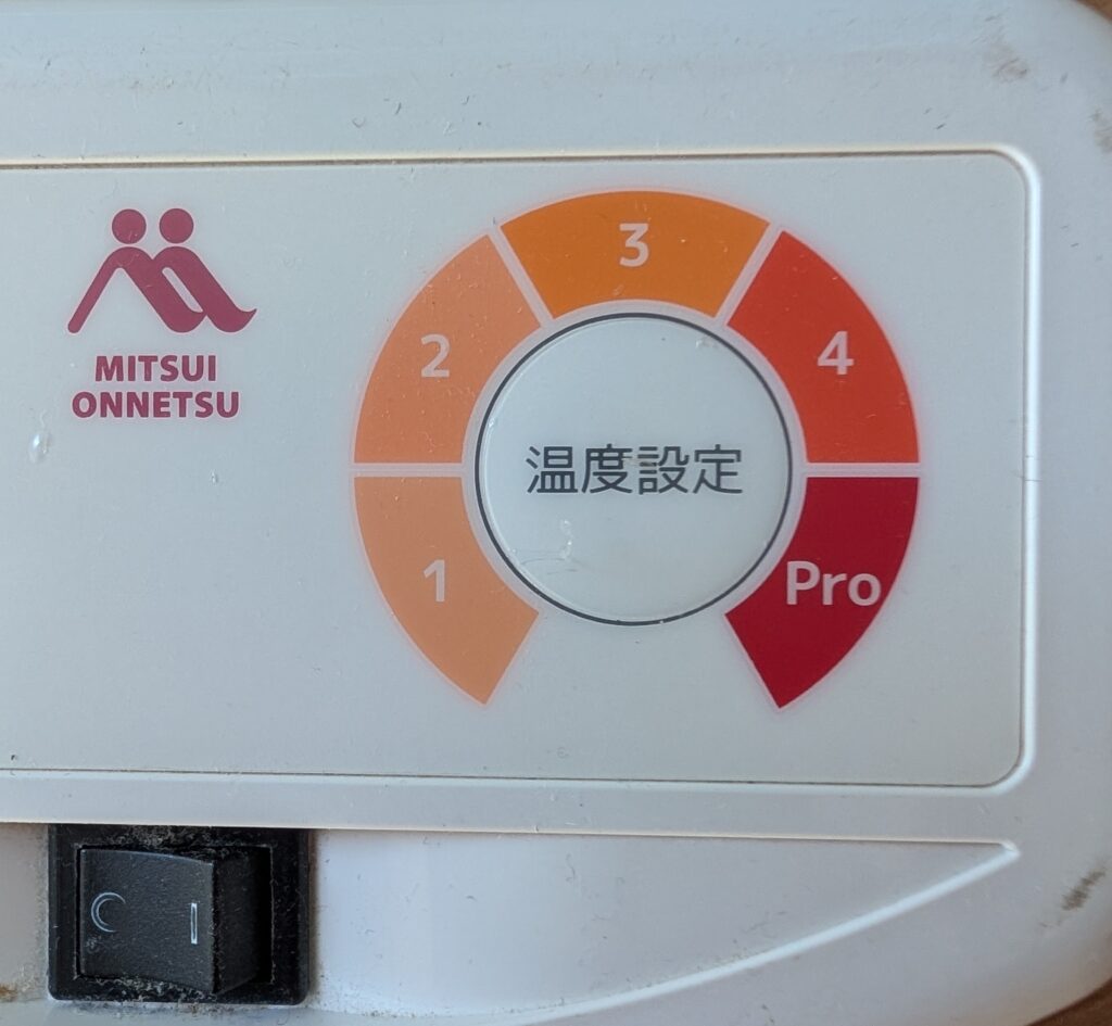 三井温熱の温熱器は、設定が段階で分かれています。